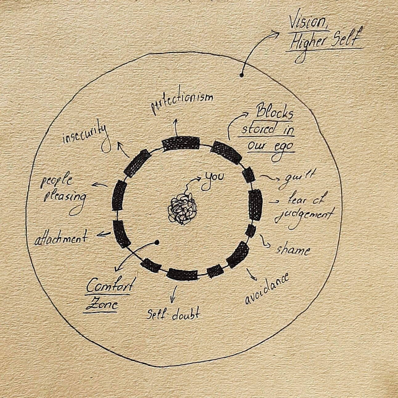 Imagine border of your comfort zone is built out of inner blocks stored in your ego.